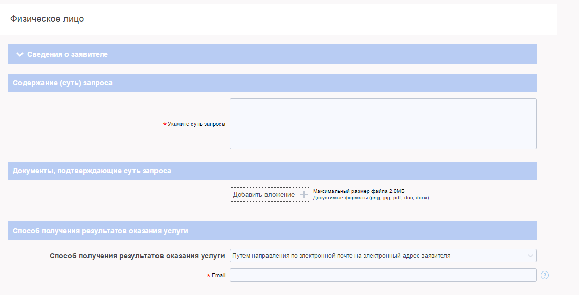 «Документы, подтверждающие суть запроса»,Способ получения результатов оказания услуги