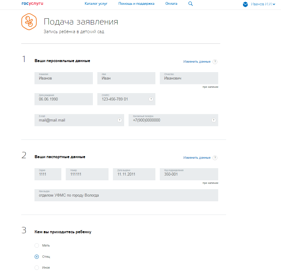 откроется форма для заполнения разделов данных Ваши персональные данные