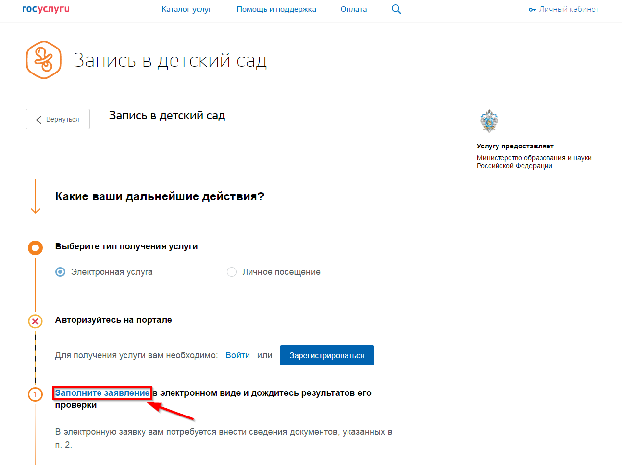 Для получения услуги Вам необходимо пройти авторизацию на портале госуслуг – зайти на него под своим личным идентификатором и паролем. Если Вы еще не прошли регистрацию, пожалуйста, зарегистрируйтесь.