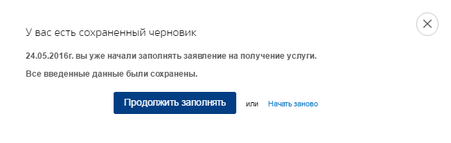 Вы можете создать новое заявление или использовать имеющиеся черновики. Далее нажмите кнопку Продолжить заполнять