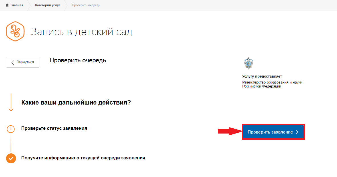 Ход обработки заявления можно посмотреть на странице Проверить очередь Портала госуслуг .