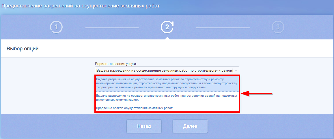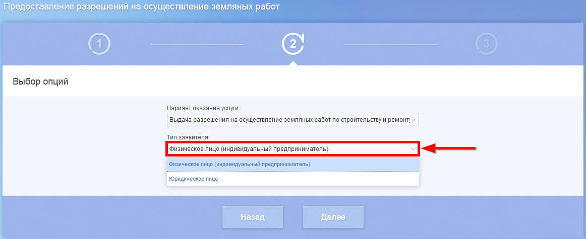 Далее выберите нужные варианты в выпадающих списках для полей:Вариант оказания услуги