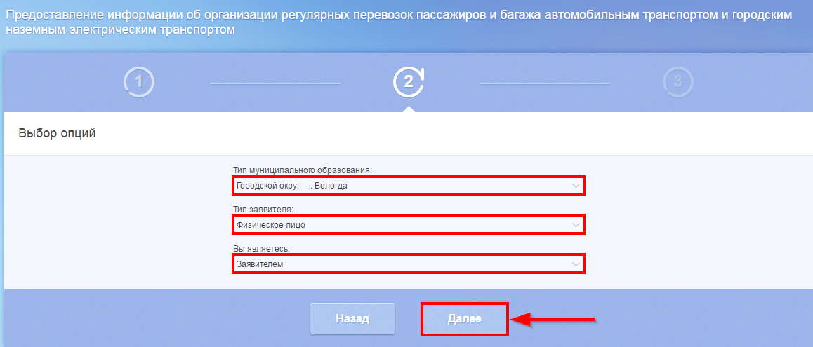 После нажатия кнопки «Далее» откроется форма для заполнения разделов данных: «Сведения о заявителе»,