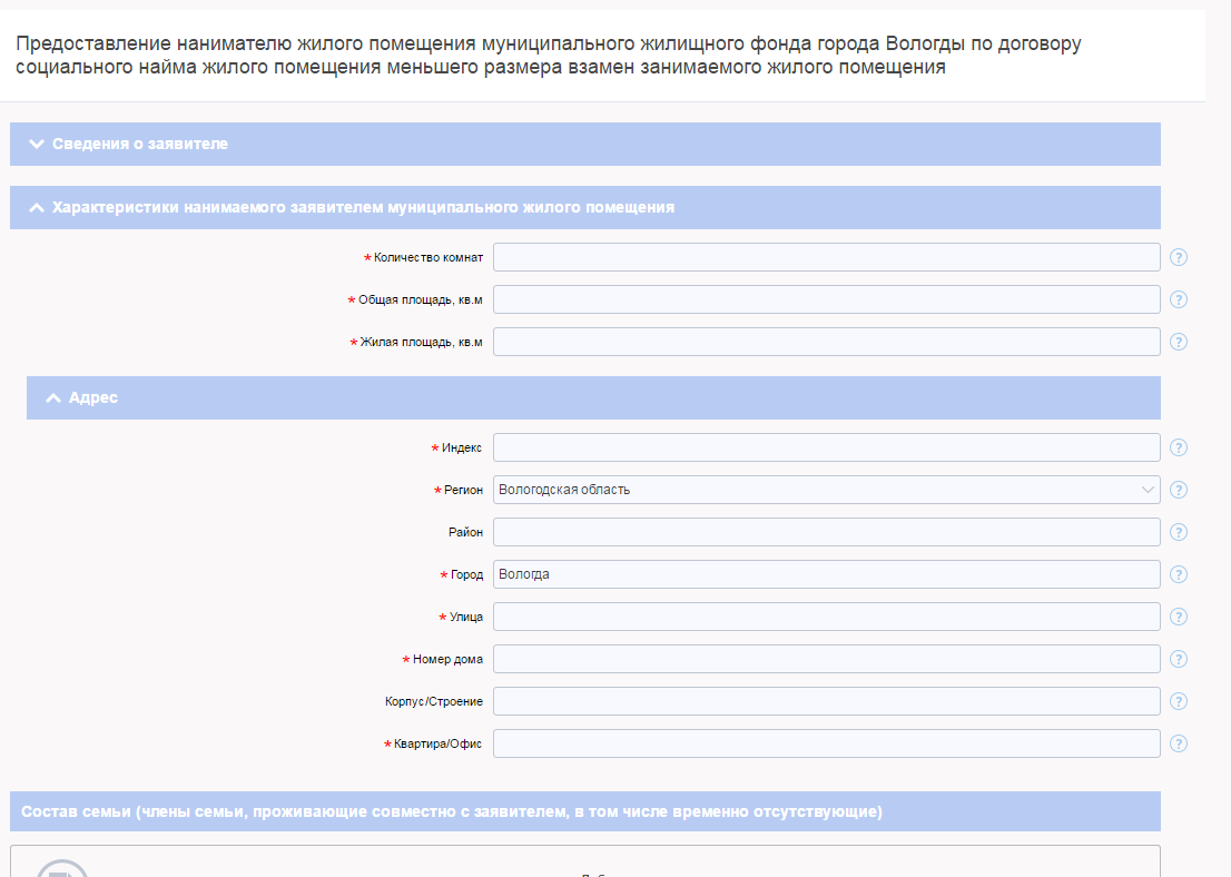 «Состав семьи (члены семьи, проживающие совместно с заявителем)»,