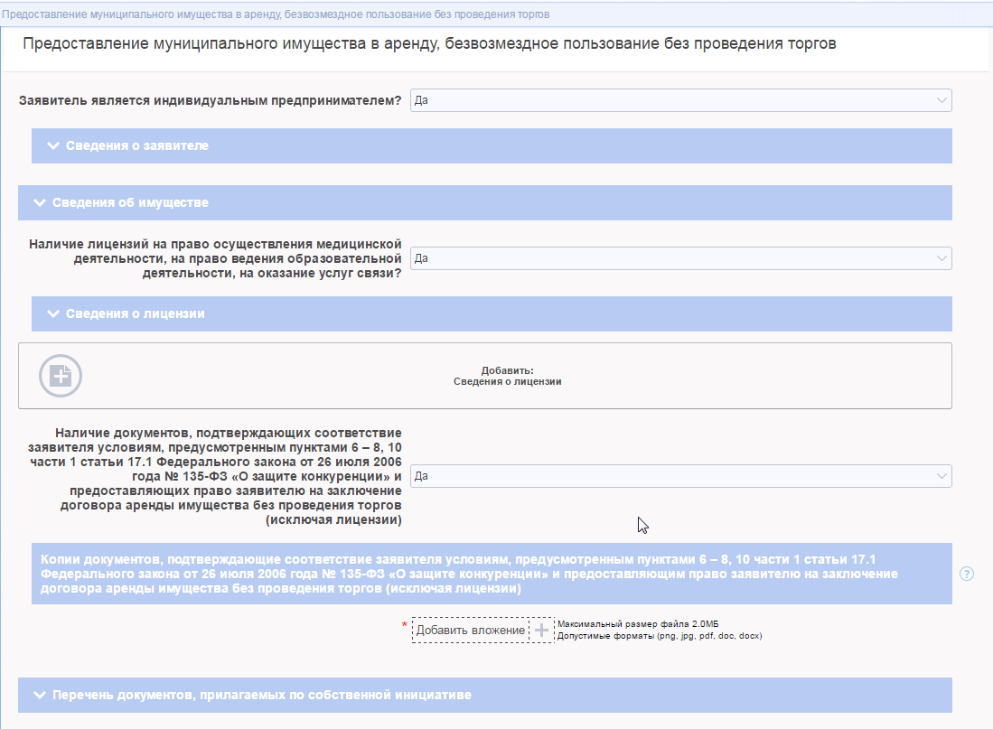 После нажатия кнопки «Далее» откроется форма для заполнения разделов данных: «Сведения о заявителе», «Сведения о заявителе», «Сведения о лицензии».